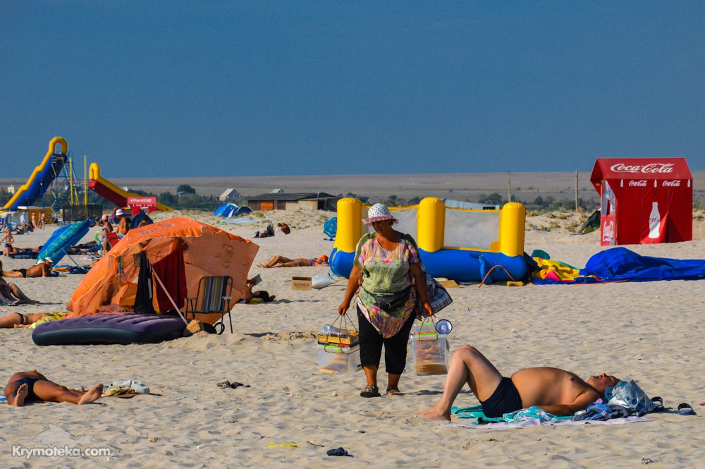 Полный набор пляжных радостей и разноцветных зонтиков, а на горизонте пустынная выжженная степь.