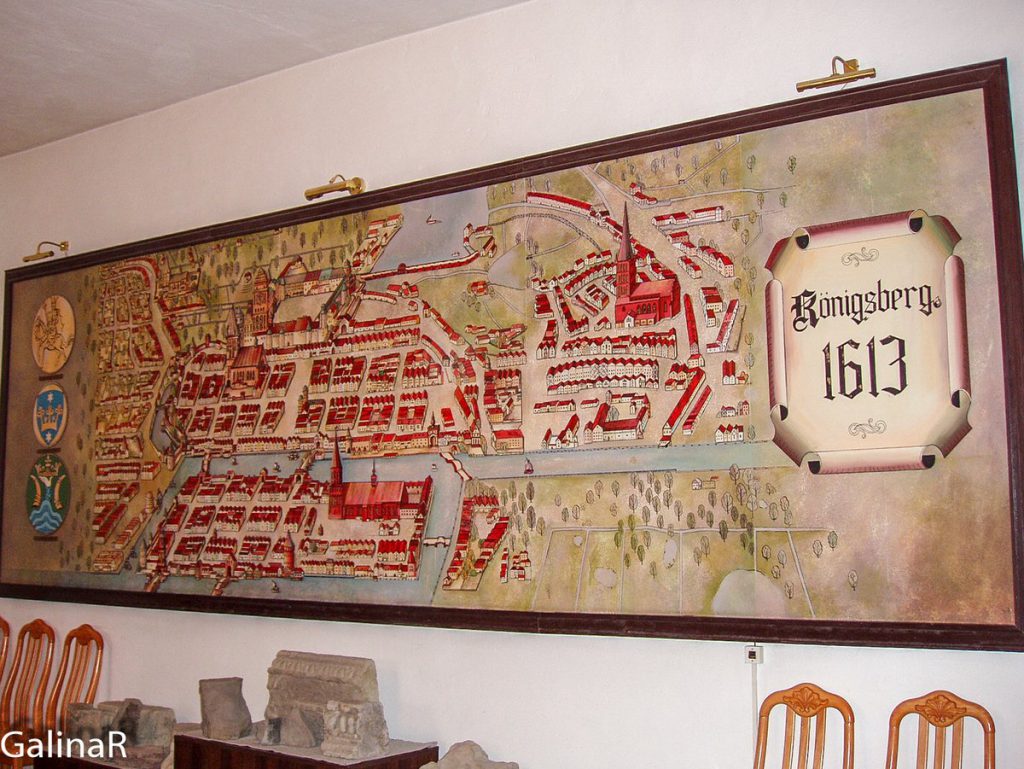 Музей занимает три этажа Кафедрального собора. В первом зале – макет Кёнигсберга 1937 года с Королевским замком архитектора музея Дырыщева А. М. Здесь же – элементы старых башенных часов Кафедрального собора.