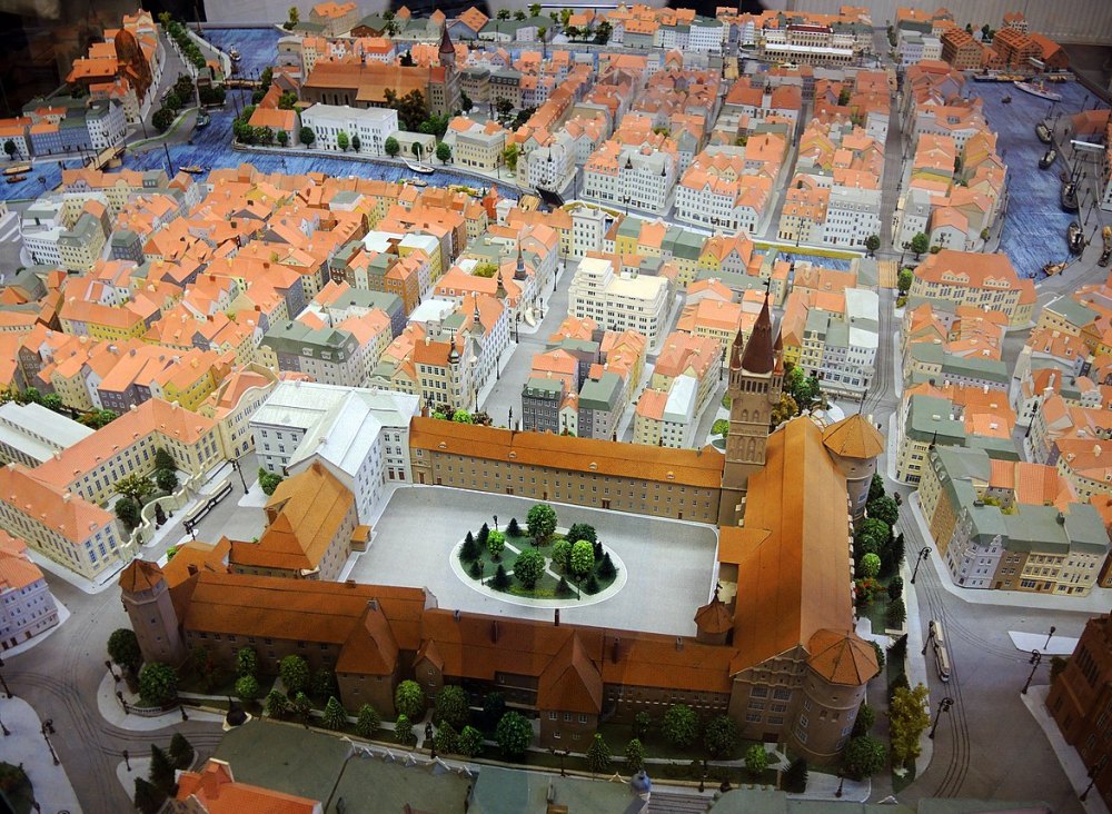 Также на макете можно видеть Королевский замок. Замок был поврежден в ходе войн, а в советское время снесены остатки руин. В настоящее время от замка остались лишь фрагменты подземелий, которые можно видеть на площади возле Дома Советов.