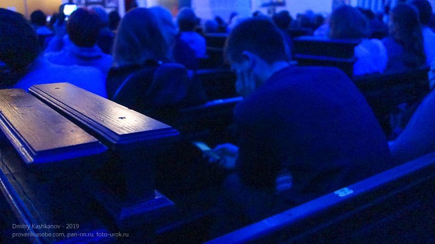 Так ваш покорный слуга оказался примерно в 20-м ряду чуть левее центрального прохода зала. Не самое лучшее место, но оно было гораздо выигрышнее, чем «призовые» места в первых рядах.