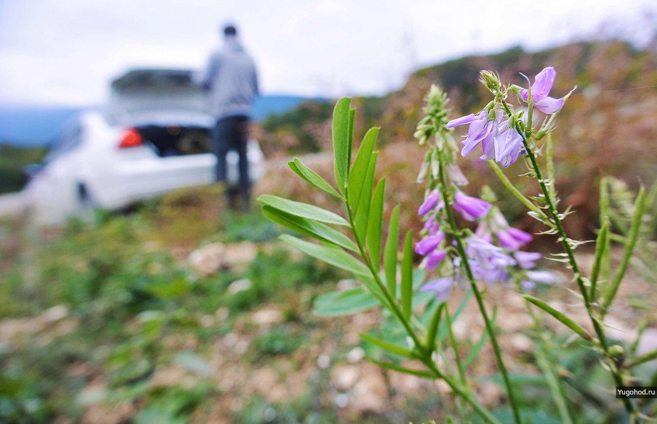 Не доезжая по асфальтированной дороге до Мезмая пару поворотов, мы выбрали подходящую полянку для парковки, подкрепились и выдвинулись в путь, по тропе, ведущей в сторону леса.