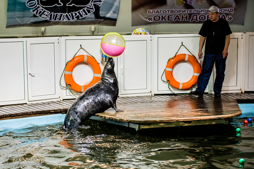 Перед представлением можно зайти пораньше и посмотреть через прозрачную стену на плавающих тюленей. После шоу можно сфотографироваться в обнимку с кем-нибудь из обитателей океанариума.