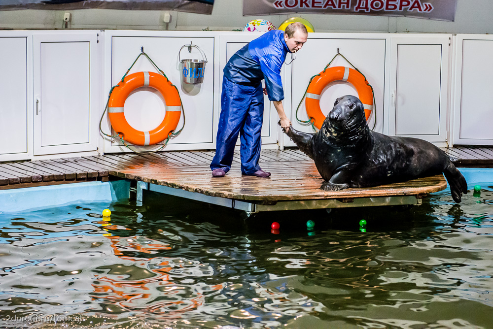 Конечно, Мурманский океанариум не сравнится с грандиозными европейскими комплексами, рассчитанными на сотни туристов, с красочными шоу, большим количеством морских животных… Мурманский океанариум небольшой, примерно на 30 зрителей. Но очень душевный и пользуется неизменной популярностью у детворы. Может как раз потому, что общение с животными очень близкое…