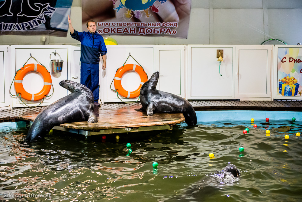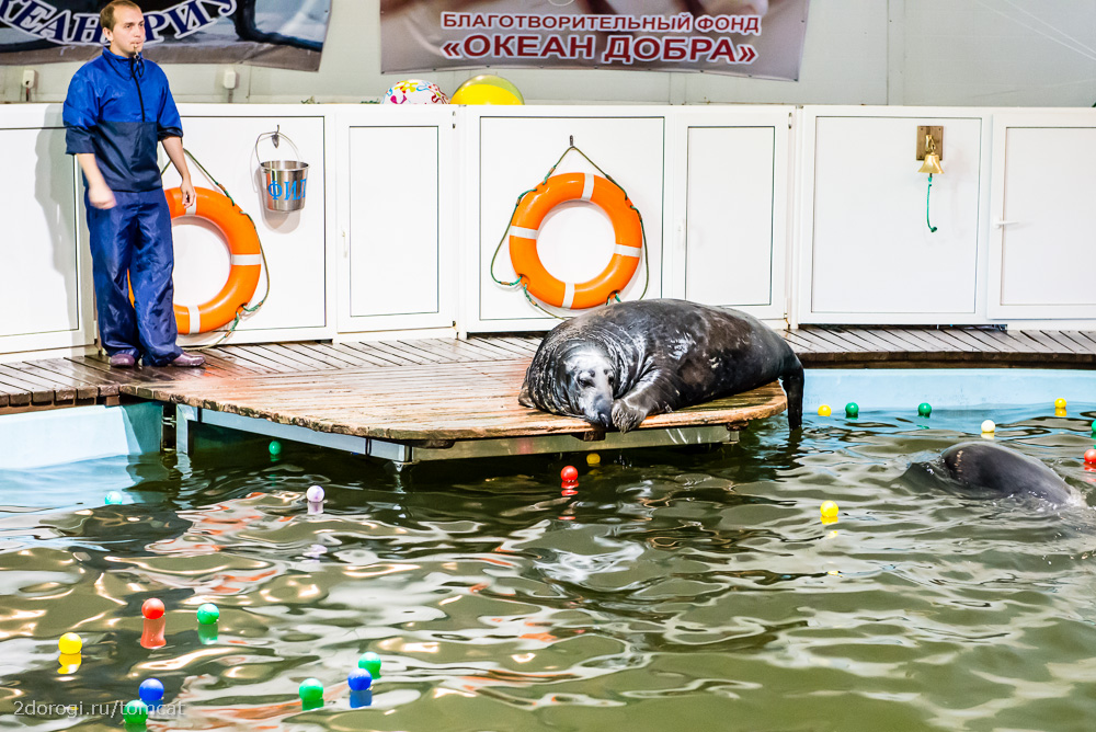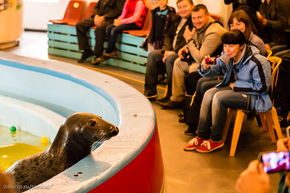 В океанариуме можно увидеть представление с участием нерпы, морского зайца, серых и гренландских тюленей.