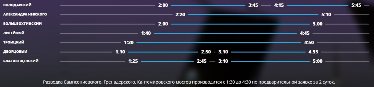 Расписание разводки мостов в Санкт-Петербурге