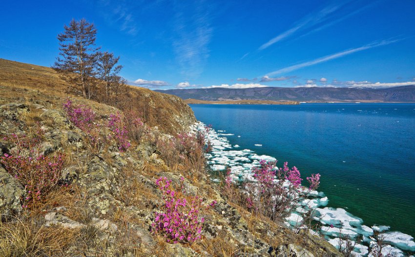 Весенний отдых на Байкале хорош тем, что можно наслаждаться пешими прогулками и быть свидетелем «пробуждения» природы. В мае можно увидеть первые весенние цветы: багульник и подснежники, зеленую травку и появляющиеся листочки на деревьях.