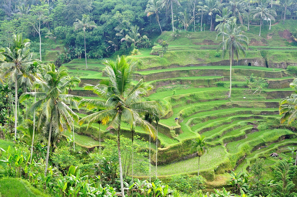 Природная достопримечательность этих мест — рисовые террасы. Умиротворяющий пейзаж все время меняет свой цвет. Рис выращивают всего 3 месяца, и разные стадии созревания злака окрашивают картинку в разные цвета — голубые, зеленые, желтые. Ценителям природных красот понравится 40-метровый водопад Гит-Гит и черепаший остров Серанган.