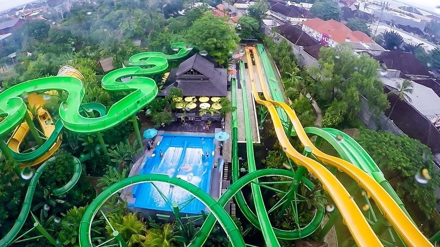Аквапарк Waterbom расположился в самом шумном балийском курорте – в Куте. Пожалуй, место выбрано наиболее удачным, всё же контингент отдыхающих в Куте любит активный и шумный отдых. Аквапарк Waterbom приходится, как нельзя кстати, к облику курорта. Парк работает с 9:00 по 18:00 и предлагает массу аттракционов, бассейнов и развлечений. Территория парка оставляет своей чистотой приятное впечатление. Всё очень аккуратно и чисто, это не может ни радовать. Клининговые работники сливаются с посетителями, они особо не выделяются, ходят себе и поддерживают чистоту. Стоит отметить, что в парке полно указателей. Для огромной территории аквапарка, это как нельзя кстати. Указатели понятные и логичные, это делают навигацию комфортной.