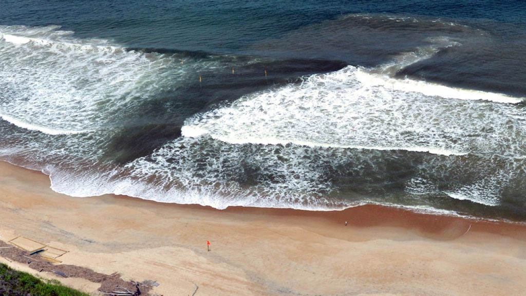 В море во время отлива часто образуются отбойные течения. При этом прилившаяся к берегу вода с разной скоростью уходит назад в море и может легко утащить с собой человека. Опознать отбойное течение можно по следующим признакам: бурлящий поток в относительно спокойном море или наоборот — спокойная полоса воды среди волн. Поток при этом имеет отличный от остальной воды цвет.