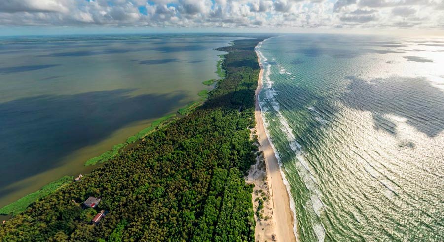 Куршская коса — это полоса суши, которая покрыта песчаными дюнами и небольшими сосновыми и берёзовыми лесами. Она потянулась вдоль Балтийского моря на 98 километров. Достопримечательности здесь есть это: «Танцующий лес» (стволы сосен замысловато искривлены), дюны Эфа 70 метров в высоту, в которых живут редкие виды птиц.