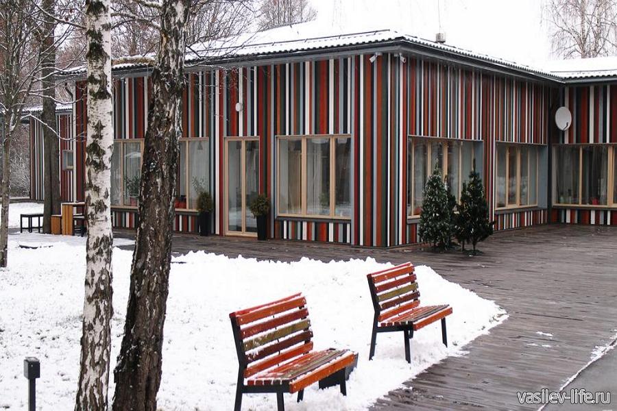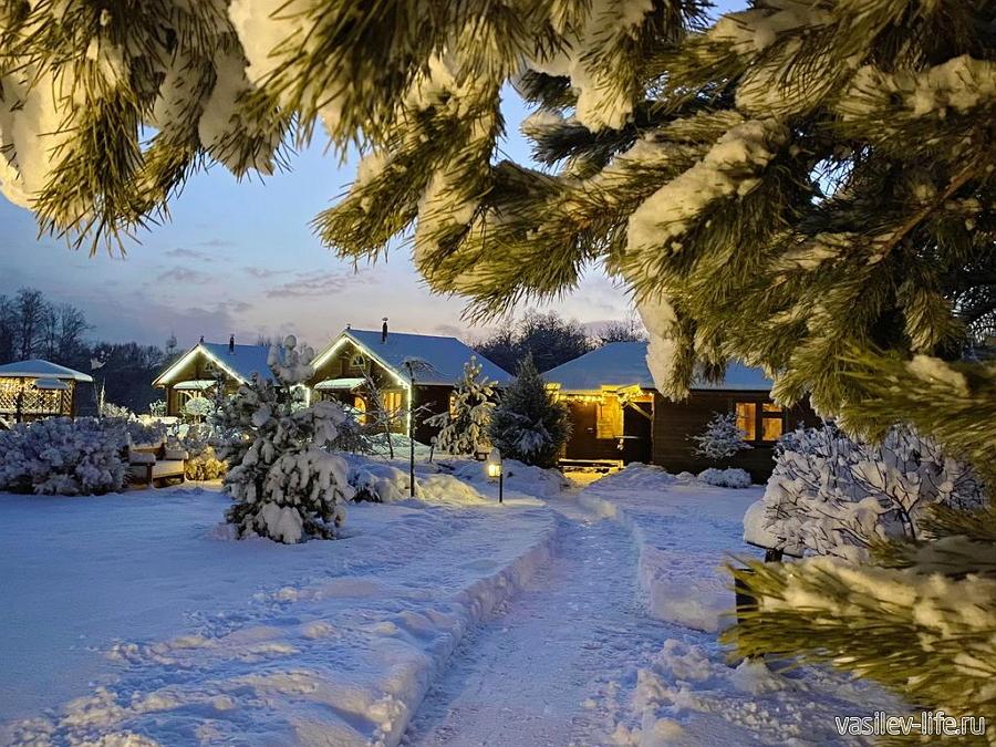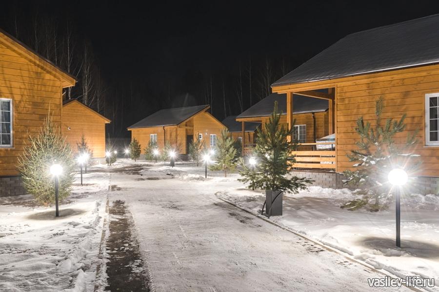 На территории комплекса семейного отдыха можно отлично встретить Новый год 2022 с друзьями. Для проживания предлагаются коттеджи с одной или двумя спальнями и гостиной. Некоторые варианты имеют собственную сауну. На территории имеется ресторан русской кухни, где подаются блюда из морепродуктов, русская баня с бассейном. Коттеджи располагаются на берегу пруда, что особенно ценят заядлые рыбаки.
