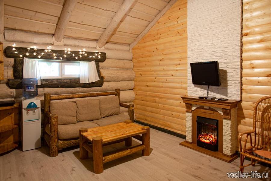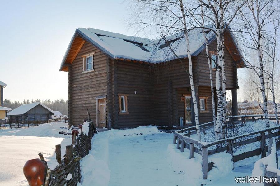 Благоустроены дома с одной, двумя или четырьмя спальнями станут отличным вариантов встречи Нового года в кругу друзей. Деревянные дома выполнены в старорусском стиле – теплые, уютные, оборудованные всем необходимым, включая бытовую технику, посуду, постельное белье и так далее. На территории есть сауна. Есть пруд, в котором можно порыбачить. В стоимость проживания, в некоторых вариантах, входит рыбалка, в других – посещение сауны.