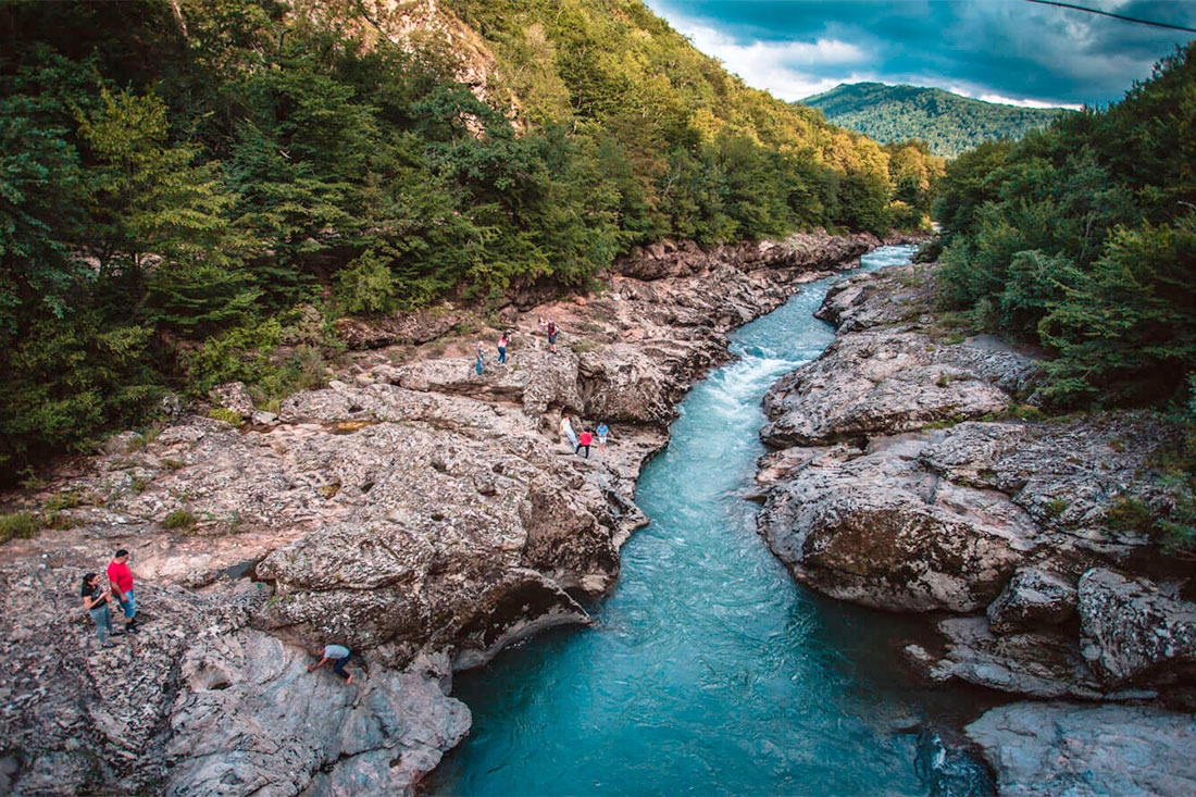 По дну каньона протекает река Белая. На более узких участках она пенится и бурлит, создавая водовороты и каскады — очень живописно. Ее берега покрывает уникальная растительность, тут и буки, и грабы, и рододендроны, и даже лианы. На многих отрезках к берегу реки можно спуститься, отдохнуть на уединенном пляже или погулять по девственному лесу. Еще одним плюсом каньона станет ценник — всю эту красоту можно осмотреть совершенно бесплатно.