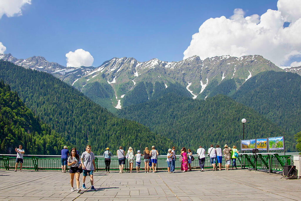 У туристов есть возможность воспользоваться многочисленными услугами и развлечениями. Особой популярностью пользуется посещение смотровой площадки, откуда можно увидеть Рицу во всем ее великолепии. Также на озере разрешают рыбачить или кататься на катамаране.