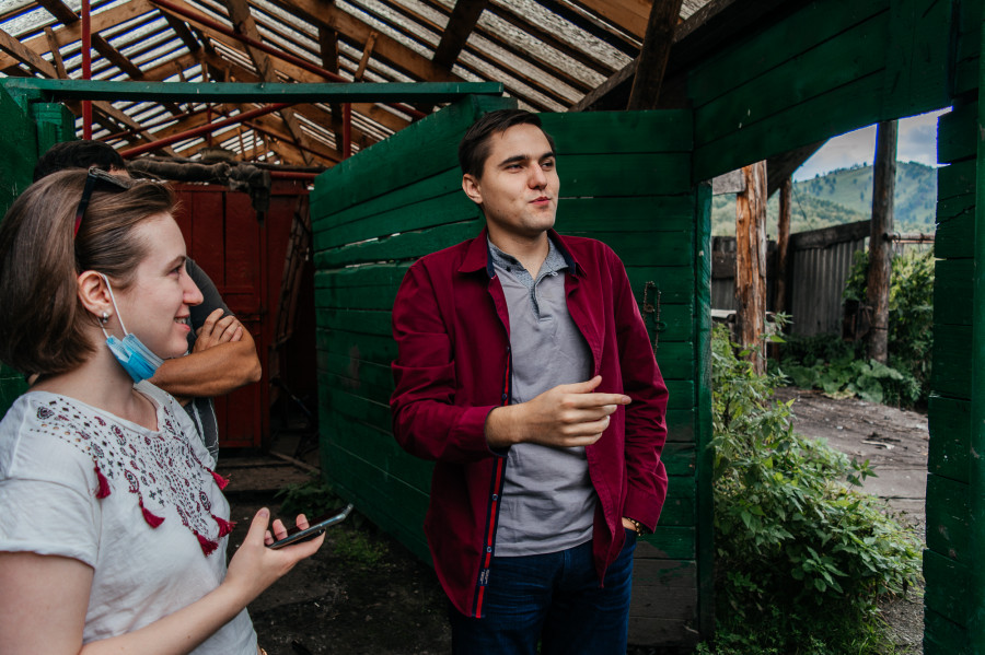 Рему Воронкову всего 23 года. Но хозяйством он управляет так же уверенно,как конем или автомобилем. На мужчине темно-бордовая,цвета марсала,рубашка,что кажется довольно символичным — словно животноводческое дело впиталось в его плоть и кровь.