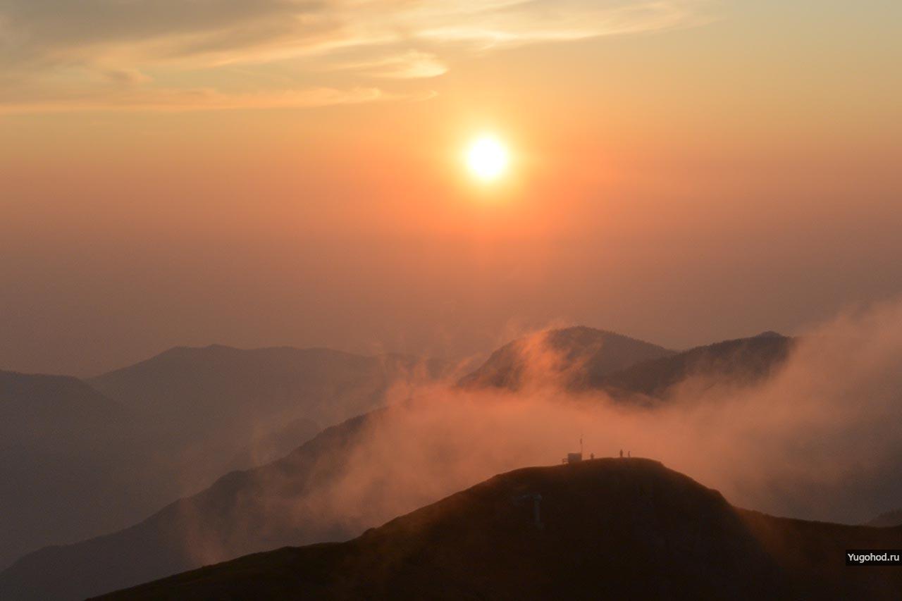 Вернувшись к Розе Пик, решаем дождаться захода солнца. Закат в горах — это всегда потрясающе! Вдвойне прекрасно, когда есть возможность после заката спускаться не пешком, а на “транспорте” — в нашем случае в вагончике канатки.