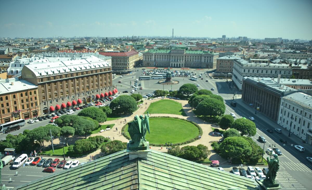 Уточним: с небольшой высоты. Так сказать, пешеходной. С высоких зданий, куда вы можете забраться по лестнице. Похоже на продолжение предыдущего пункта, но все же не оно. Там речь шла про крыши, а здесь больше про смотровые площадки, и они (почти все) разворачиваются на все 360 градусов. №1 из них, конечно, колоннада Исаакиевского собора — по окружающей обстановке, охвату обзора и в целом впечатлениям.