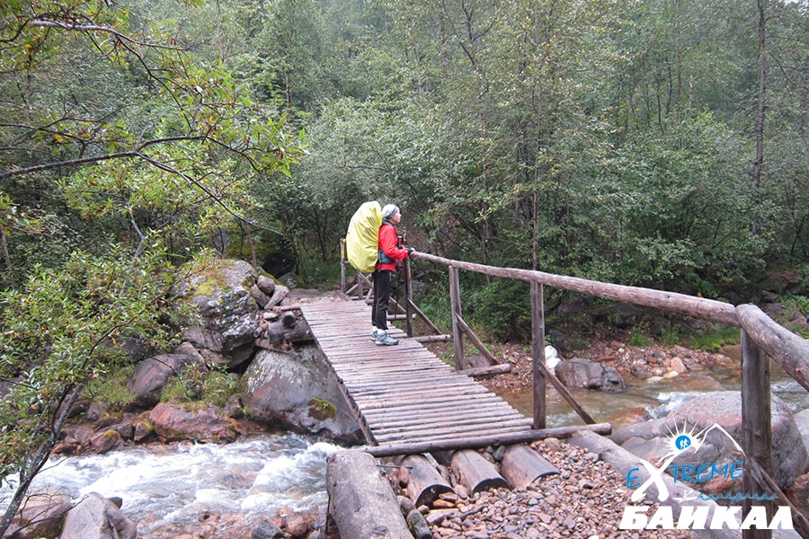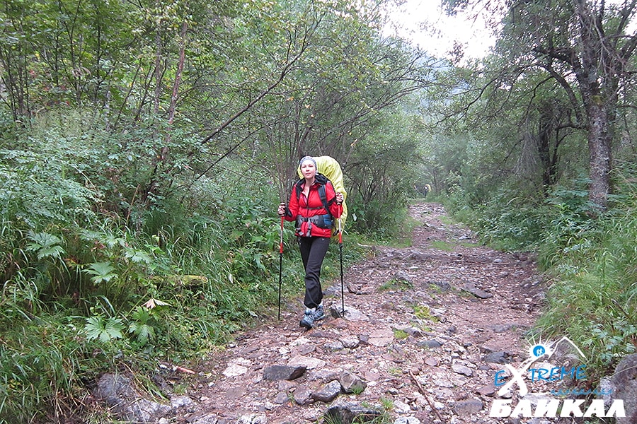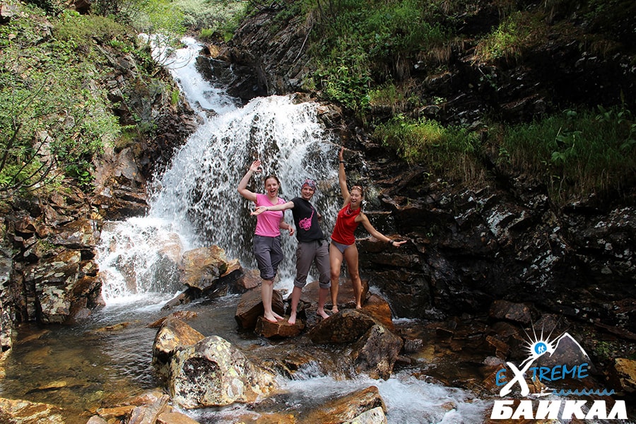 Спуск. Не забываем сделать уникальные фотографии на фоне байкальских гор! Если есть силы, желание и время, можно на обратном пути посетить водопады реки Подкомарной.