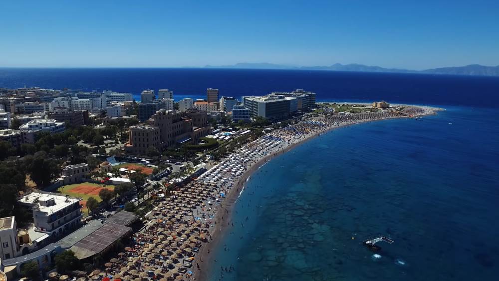 Знаменит в первую очередь как родина одного из 7 чудес света — Колосса Родосского. Погода дарит отдыхающим более 300 солнечных дней в году, благоухают рощи миртовых, апельсиновых, оливковых деревьев. Кипарисовые и хвойные леса создают особый микроклимат. На западном побережье побережье галечное, за нежным мелким песочком придется перебраться на восток, на курорты Колимбии, Фалираки, Калифея. Отдыхающих ждут широкие пляжи в удобным спуском в воду, многочисленные дневные развлечения и яркая ночная жизнь.