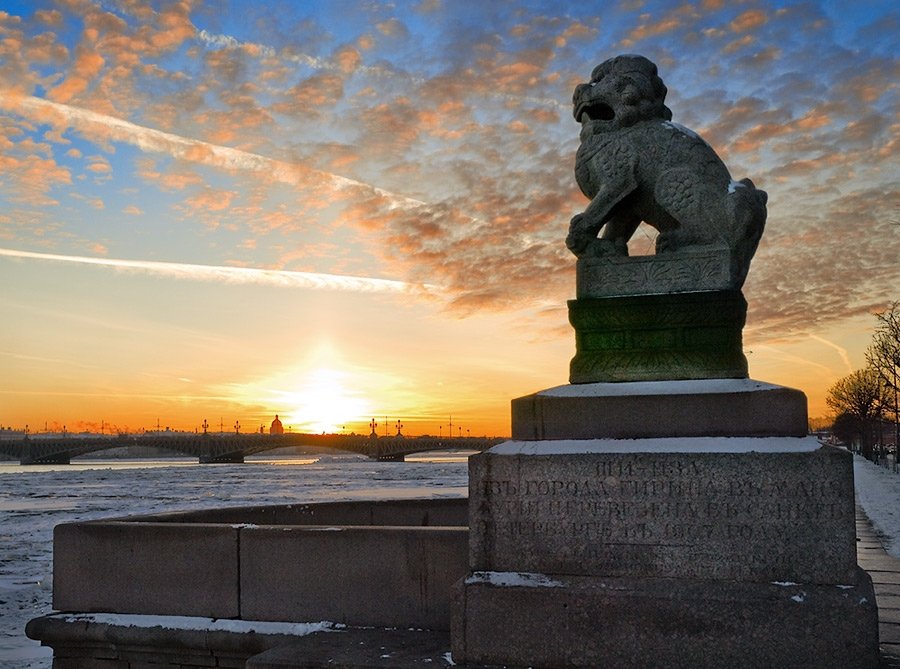 Как бы там ни было, а до сих пор величавые звериные скульптуры занимают свое особое место под небом Санкт-Петербурга. Хорошо просматриваемые с множества точек Адмиралтейской набережной, четкие профили львов отображаются на фоне глади Невы, одновременно украшая гордыми очертаниями небесный свод…