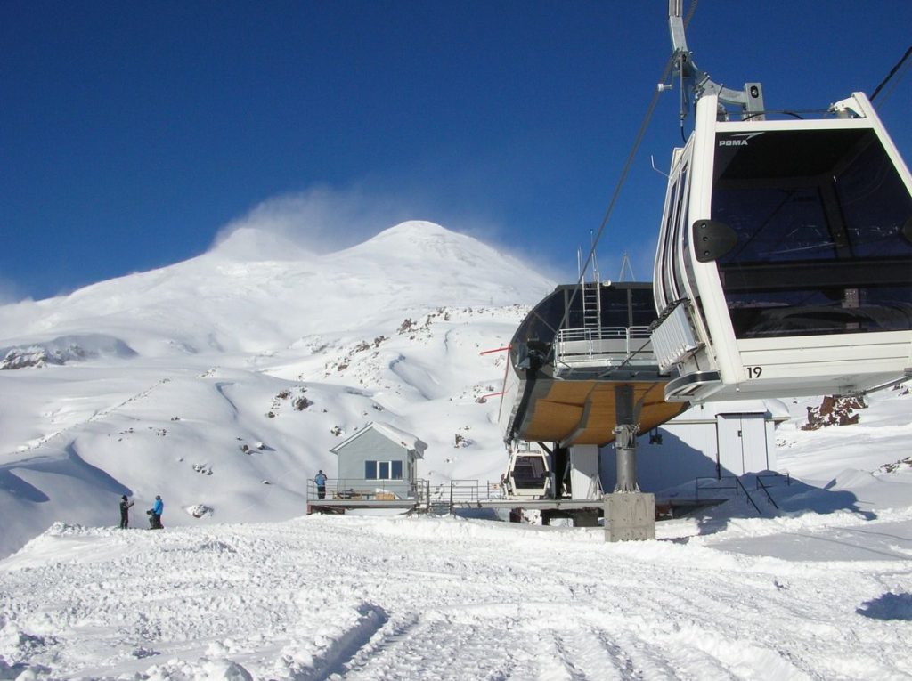На горе Эльбрус подъемники включают в себя 2 очереди новой канатной дороги гондольного типа, 2 очереди маятникового подъемника, одну канатно-кресельную дорогу и 2 бугеля. 1 очередь: Азау — Кругозор