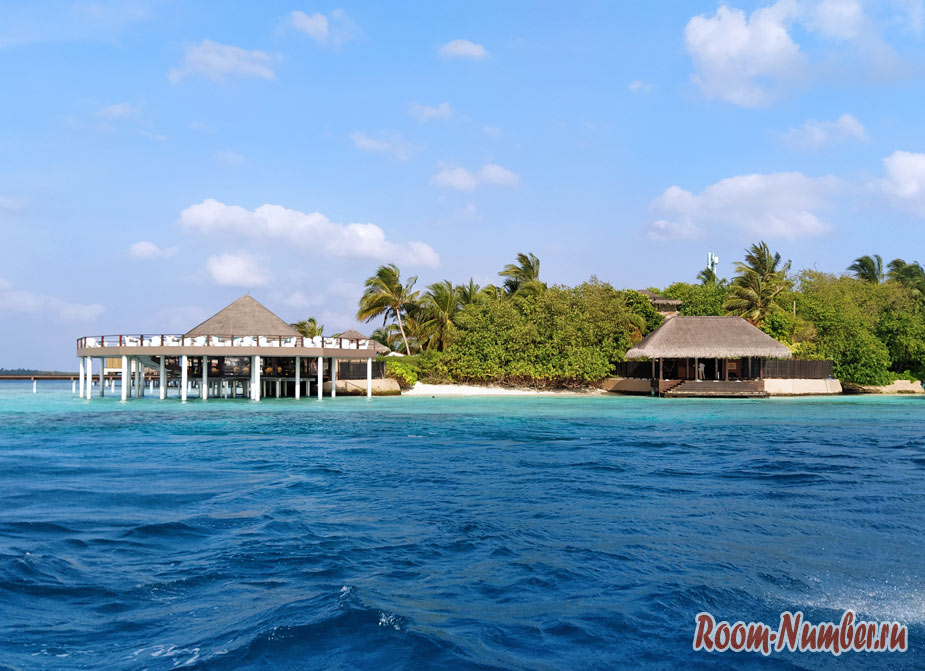 Находясь на своем острове, вы самостоятельно покупаете экскурсию на понравившиеся острова-резорты. С Маафуши мы посетили таким образом: