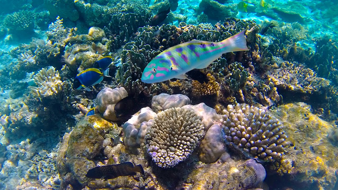 Химанду — самый дикий из островов. Хороший домашний снорклинг, осталось больше живых кораллов, есть внешняя стенка рифа.