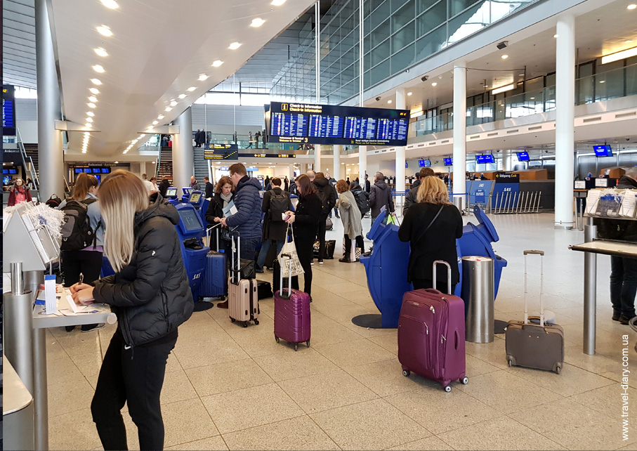 Аэропорт в Копенгагене считается самым большим в Дании. Он достаточно удобный и компактный. Разобраться не составит труда. Есть таблички, указывающие вход на платформы метро, поездов и автобусную остановку. Там же расположены терминалы для покупки билетов на общественный транспорт Копенгагена, включая скоростной поезд и электрички, например в Мальмё, Стокгольм и т.д. На стойках в аэропорту туристам, предлагается бесплатная карта города и общественного транспорта. Аэропорт Каструп расположен в восьми километрах от центра города.