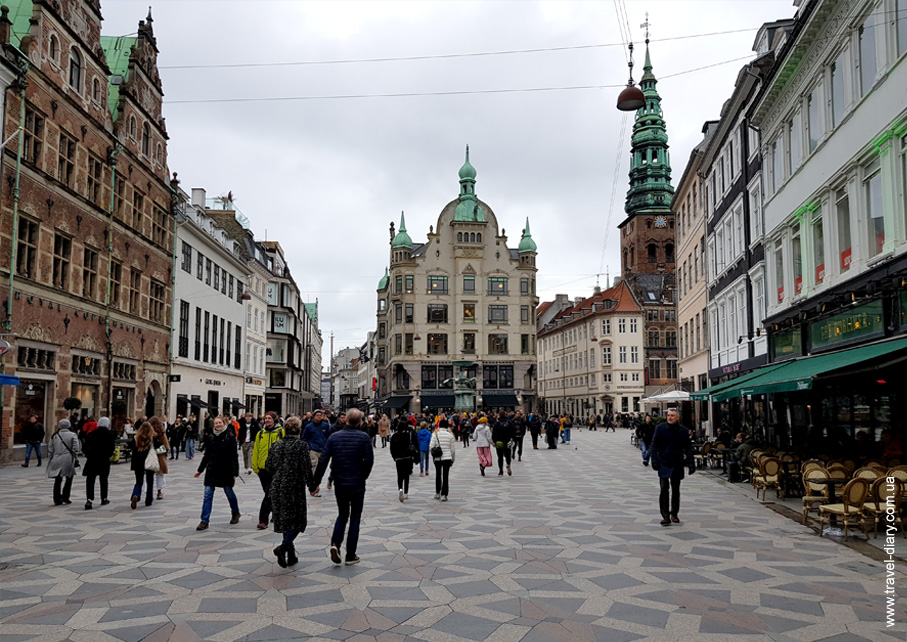 На Ратушной площади столицы, где находится памятник главному сказочнику страны (да и Европы, пожалуй), начинается самая старинная и длинная пешеходная зона во всей Европе под названием Строгет. Эта часть города усеяна кафе и ресторанами, шикарными бутиками и сувенирными магазинчиками. Здесь всегда много людей, на улицах звучит музыка и проходят развлекательные мероприятия.