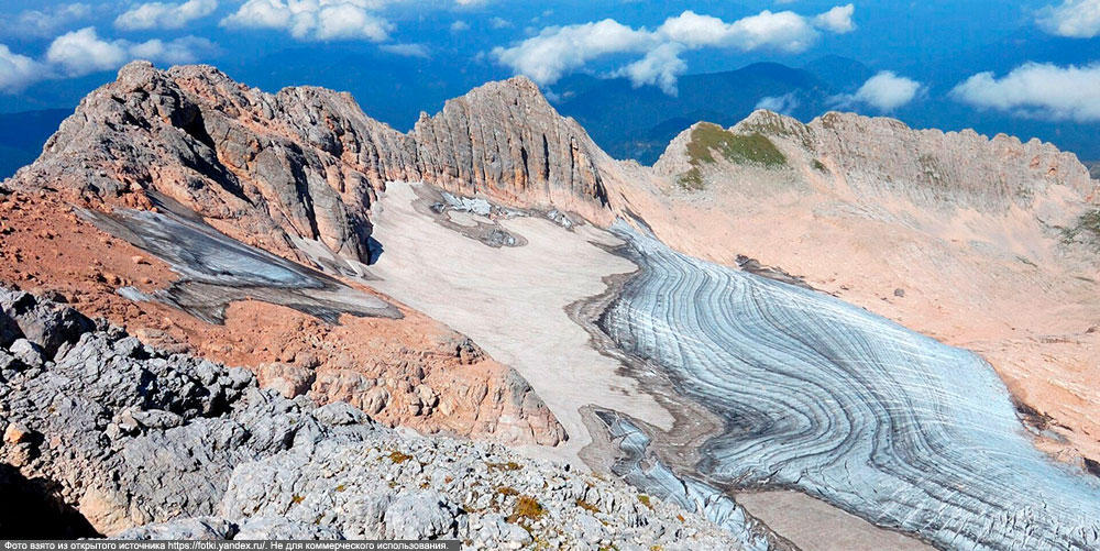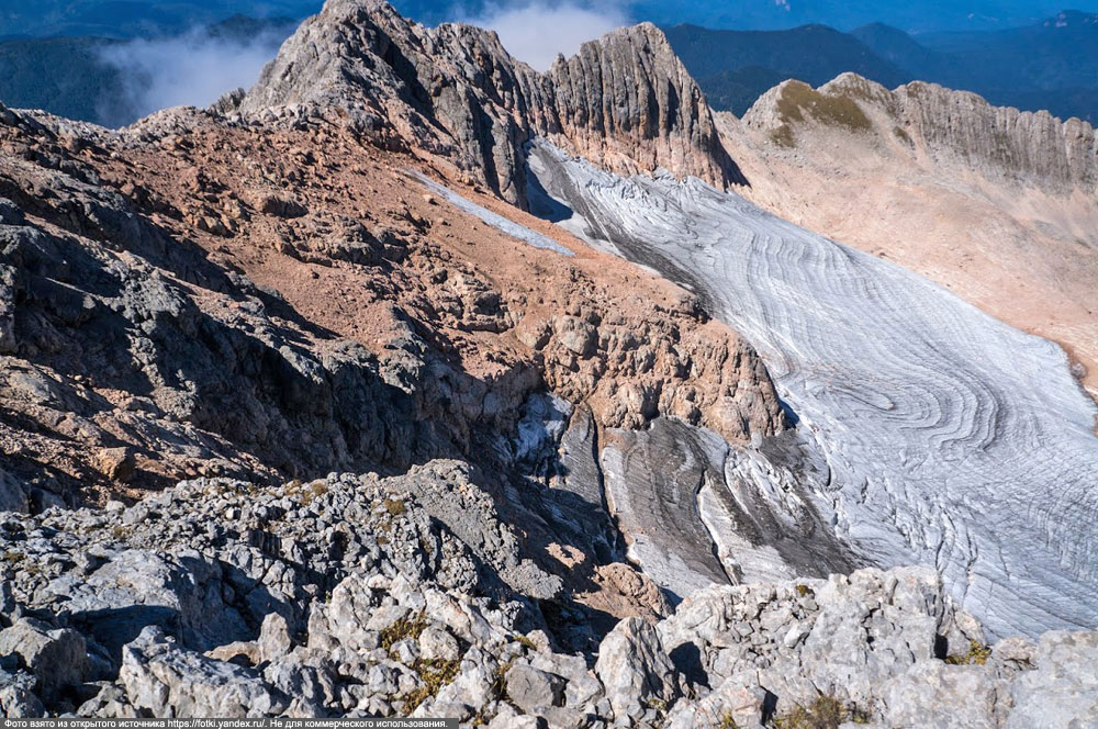 Древние ледники. Один из них называется Малый. Его высота 1 980 метров над поверхностью моря. Образование считают самым низким ледником на Кавказе. Более того – он постепенно уменьшается, но уникальность природного творения не в этом. Малый ледник Фишт хранит в своих недрах ледяную пещеру. Особенность грота в том, что сквозь него постоянно проносится мощный поток воздуха, то есть в этом царстве снега и льда вечно бушует ураган.