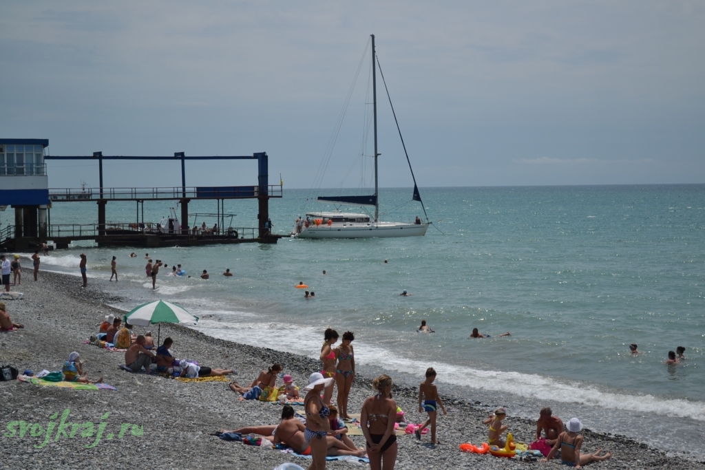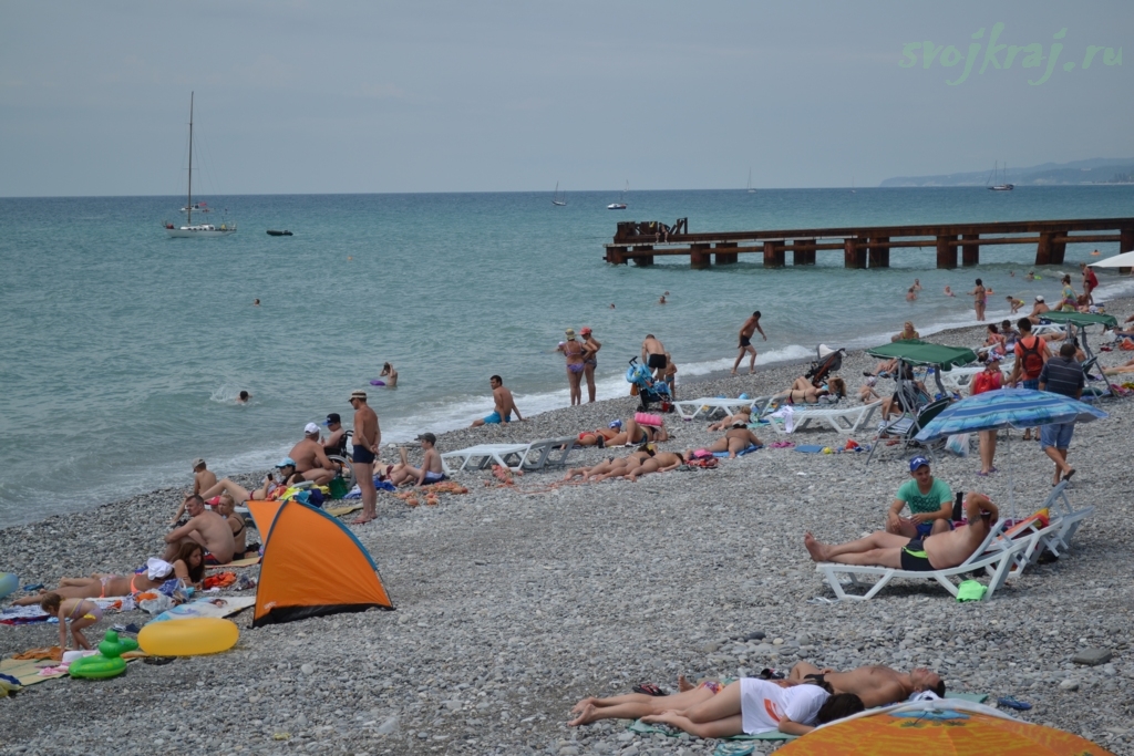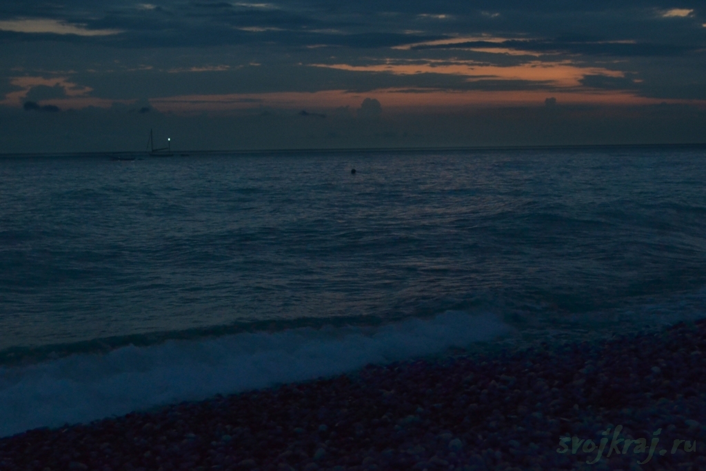 Пока ждем автобус, приводим себя в порядок, осматриваем каждую мозольку. Час езды и мы уже в пос.Лазаревское штурмуем кафе. Большая вкусная отбивная делает свое грязное дело — хочется спать.