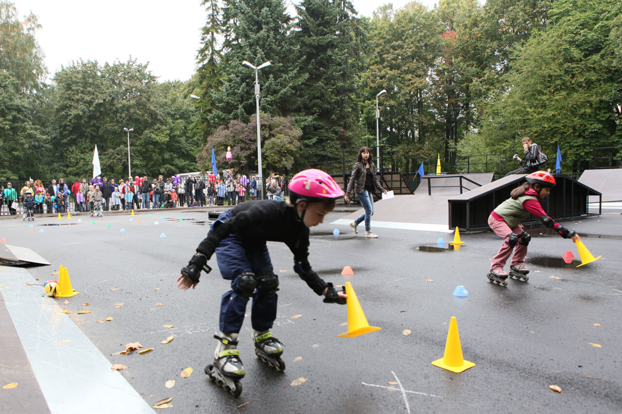 Парк без специальных дорожек, но с широкими асфальтированными аллеями, на которых будет удобно кататься, не задевая прохожих.