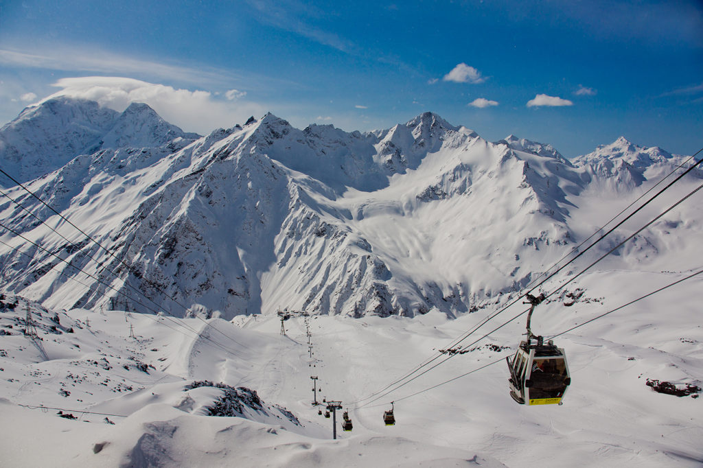 Тех, кто проходит его от самого подножия в долине Азау до вершины на 5 642 м, – единицы. Такое восхождение занимает несколько дней, а хочется же всё и сразу. Поэтому построили три подъёмника. За 1 500 рублей за полчала поднимаешься до отметки 3 850 м. При хорошей погоде, покачиваясь в кабинке подъёмника, можно любоваться долиной Азау и склонами Эльбруса. При пасмурной – тихо скрыться в облаках, чтобы вынырнуть уже за ними и восторженно выдохнуть.