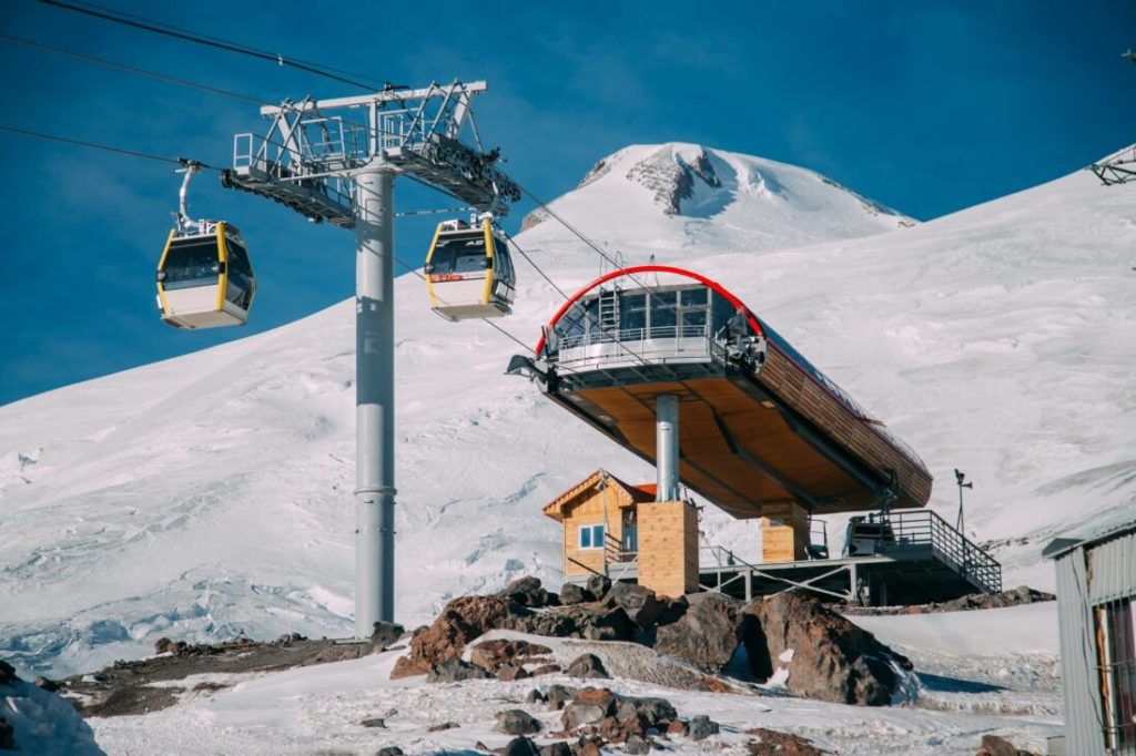 На горе Эльбрус подъемники включают в себя 2 очереди новой канатной дороги гондольного типа, 2 очереди маятникового подъемника, одну канатно-кресельную дорогу и 2 бугеля. 1 очередь: Азау — Кругозор