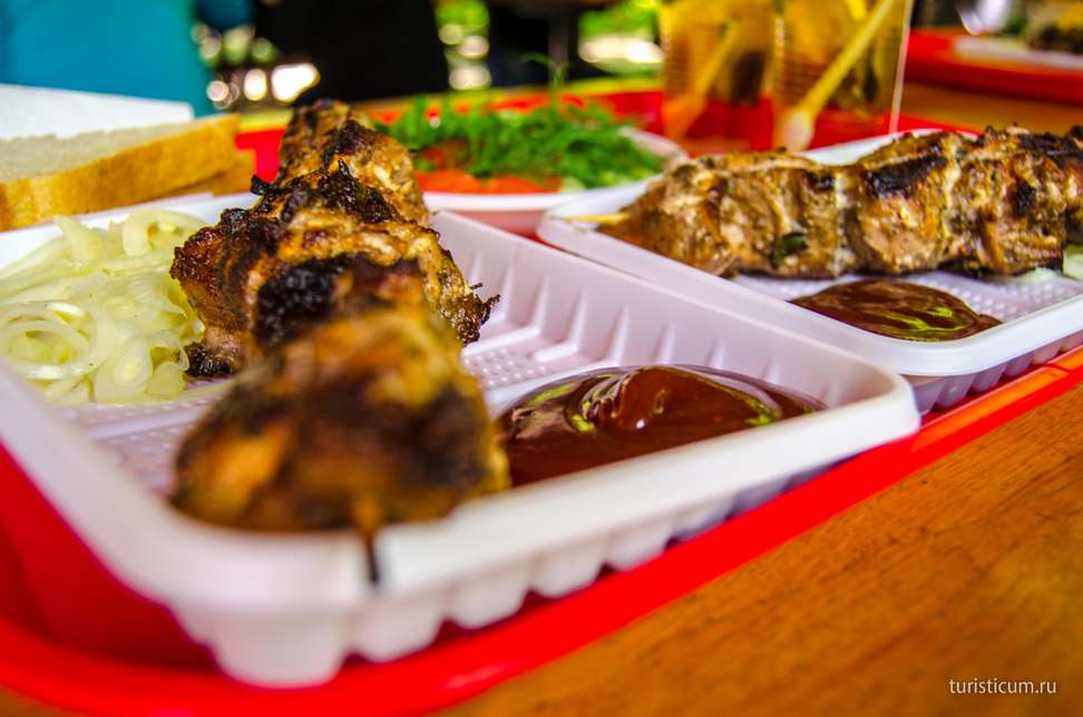Выдвигаемся в обратный путь и выходим к поляне не больше чем через полтора часа после старта с нее. Здесь нас ждут заказанные заранее шашлыки, надо признать не такие вкусные как на реке Жане.