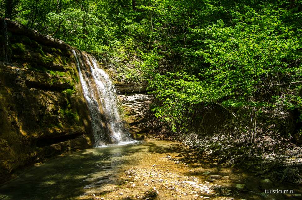 - Хрустальный — 7-метровый поток с кристально чистой водой.