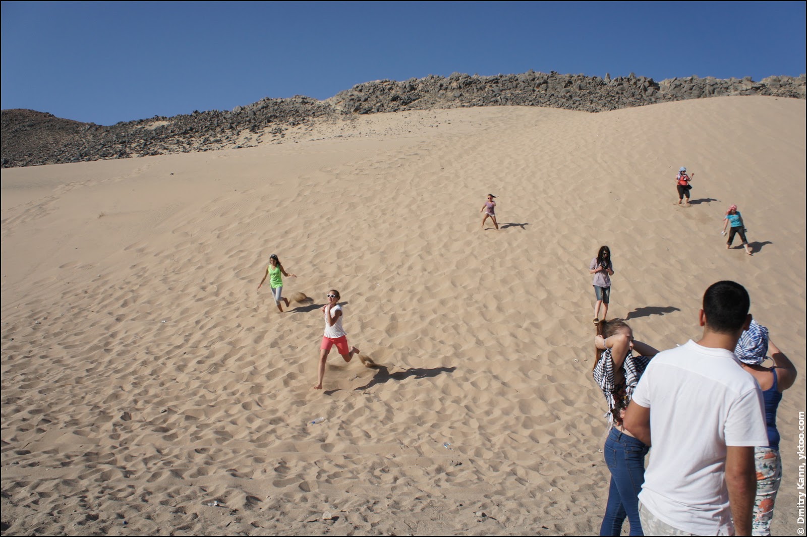 Этот склон, в отличие от первого, не каменистый, а песчаный, спускаться по нему намного веселее. Кто-то делает это бегом, кто-то прыжками, кто-то — на пятой точке.