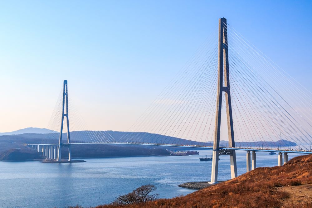 Праворульные машины здесь правят дорогами. По одной из них обязательно направляйтесь на мост, связующий Владивосток с островом Русский – огромный, масштабный, красивый, словно «Золотые ворота» в Сан-Франциско. Ах да, тут есть аналог, так и называется: «Золотой мост» 🙂 Ещё по нему с недавнего времени нельзя ходить пешком, но такси же никто не отменял. Красота и лёгкое инженерное «порно» для настоящих мужчин!