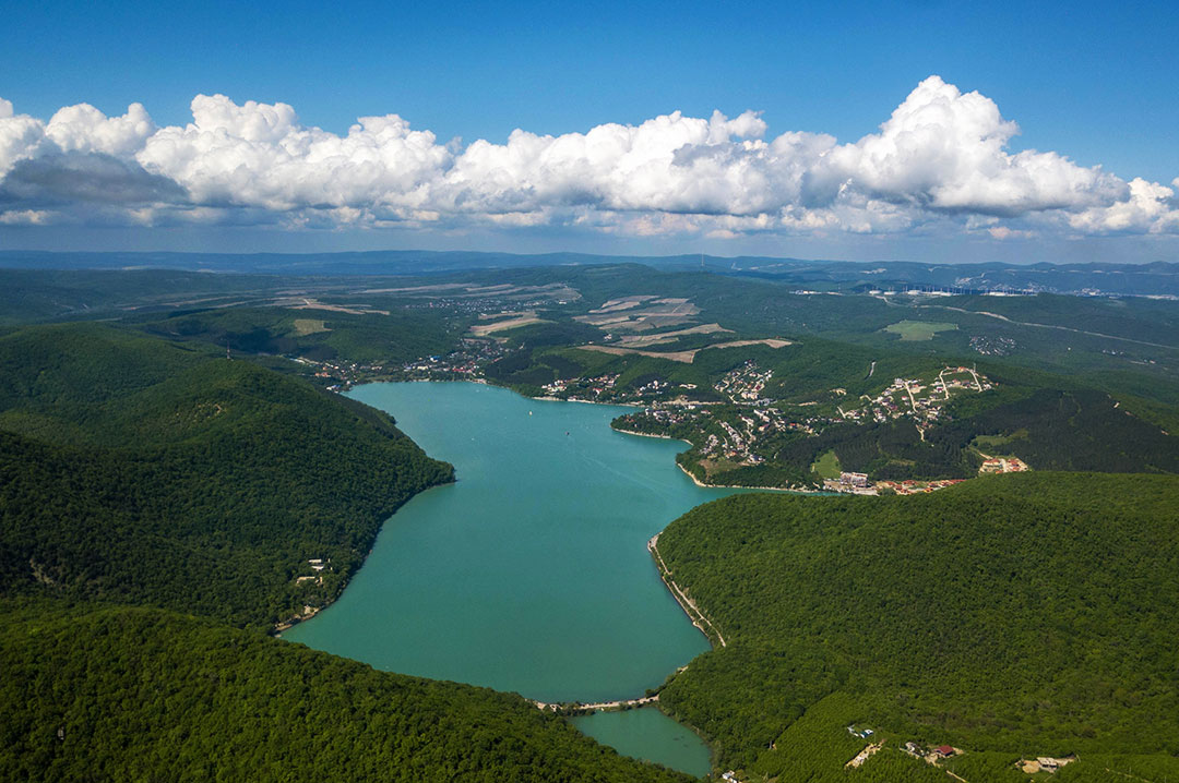 Озеро Абрау — самое большое в Краснодарском крае и славится чистой и на удивление тёплой водой. Фото: NsdPower / Shutterstock.com
