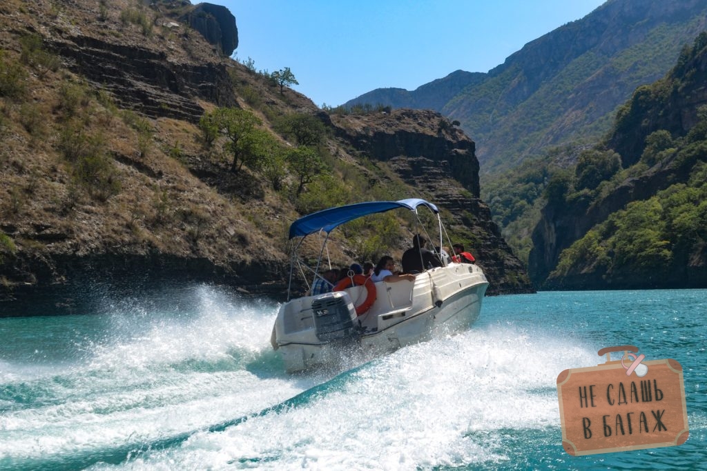 В экскурсию на каньон входит посещение двух смотровых площадок – на Чиркейском водохранилище и в поселках Дубки, катание на катерах в поселке Зубутли и обед на форелевом хозяйстве. Учитесь на чужих ошибках, не ездите экскурсией. Я бы доехала на маршрутке до поселка Дубки, и уже на месте договорилась бы с местным водителем покататься по округе на машине. Столько красивейших мест мы проехали без остановки, столько всего не посетили. А самое запоминающееся — катание на катерах, ради чего и везут в Зутубль. Водитель катера делает с пристрастием свое дело, наклоняя катер то влево почти на 60 градусов, затем резко вправо. Тебя обрызгивает водой с ног до головы, но ты безумно счастлив оказаться здесь и сейчас.Уже дома разглядывая карты, нашла быстрый путь из поселка Дубки до поселка Зубутль, его протяженность около 1,5 километров. Нужно вначале спуститься вниз до каньона, около 800 метров, перейти мостик и подняться до Зубутль.