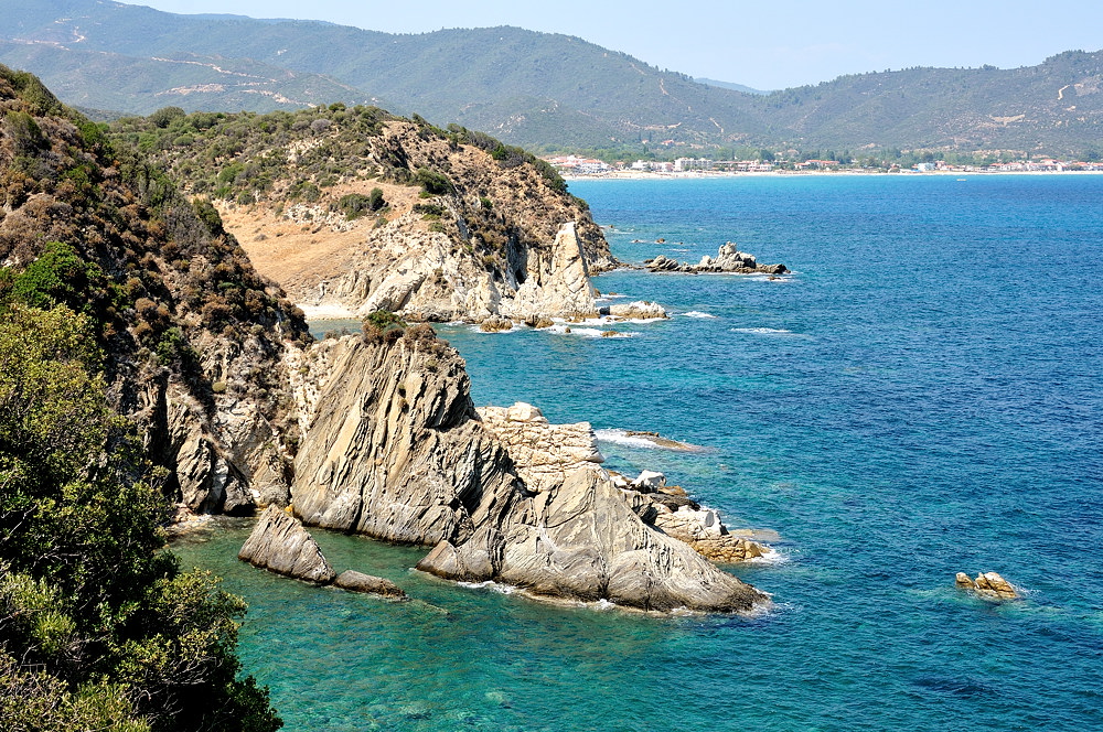 Калитея, так же как и другие города восточного, самого обжитого побережья Кассандры, такие как Певкохори, Ханиоти и Полихроно представляет собой туристическое гетто без всякой аутентичности, тем кто ищет Грецию – здесь делать нечего. Мы тоже не задержались. Окинув взглядом переполненный пляж и 10 минут погуляв по «променаду» накануне мы сбежали из этого «заповедника» на следующие утро. Чем дальше к концу пальцы, т.е. вглубь полуострова тем народу становится меньше, пляжи чище и безлюднее. Мы нашли несколько красивых и безлюдных мест. Если поискать – не так все плохо и запущено. Более менее дикие места начинаются сразу за городом Певкохори.