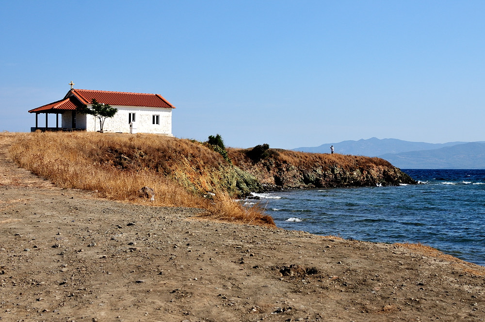 На Кассандре мы бронировали на одну ночь отель в городе Калитея (Kalithea). В наши планы входил объезд полуострова по периметру в поисках красивых мест. Здесь не такой гористый ландшафт как на Ситонии, больше организованных туристов и некоторые места вызывают стойкие ассоциации с Крымом. Но так уж я устроен, что если я приехал, то должен исследовать местность по-максимуму.