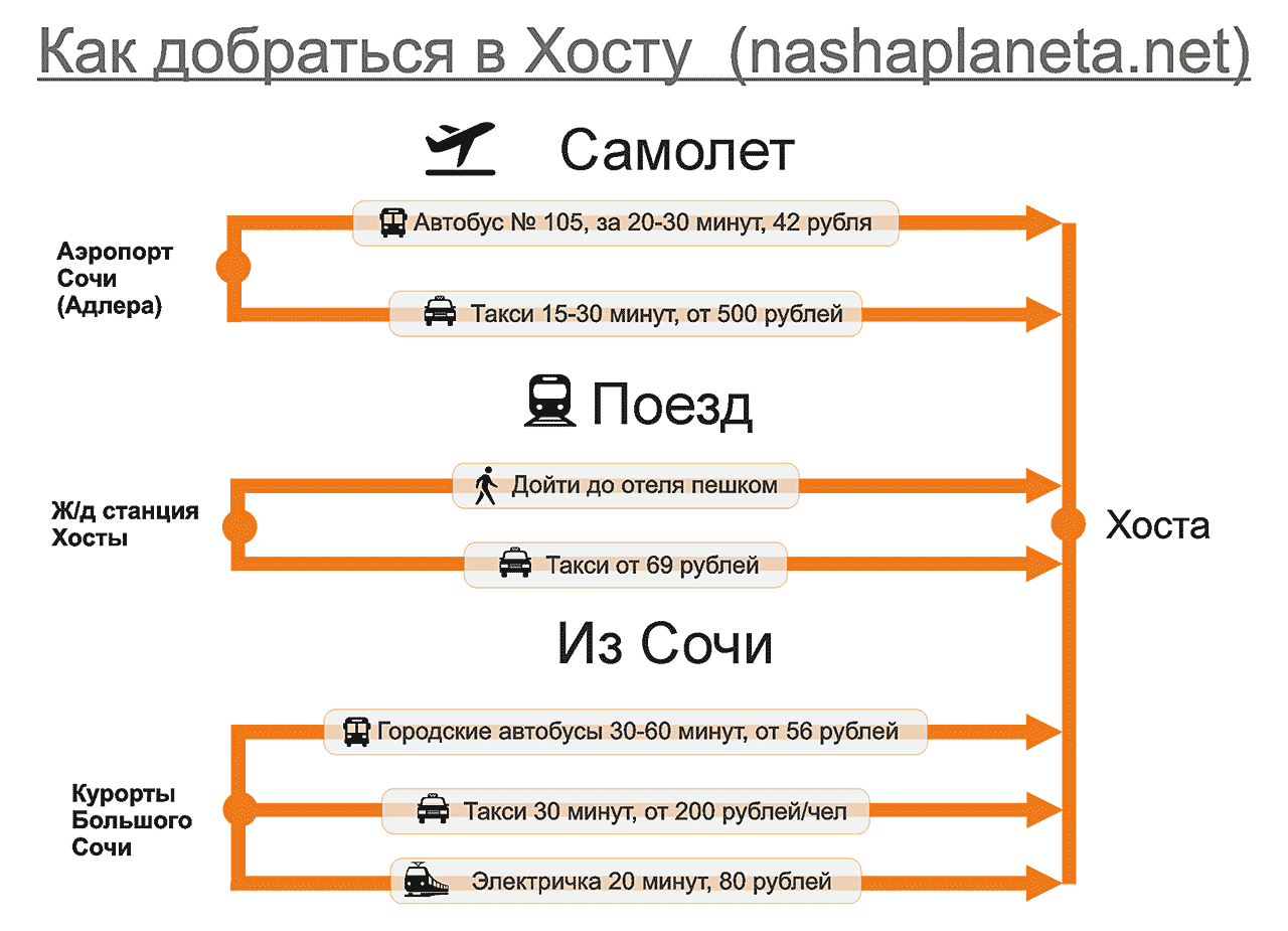 Доехать до Хосты не составит труда, так как в Краснодар, Сочи и Адлер можно добраться воздушным, железнодорожным и другими наземными видами транспорта.
