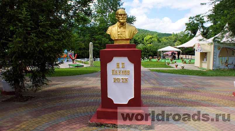 Перед аквариумом стоит памятник Павлову.