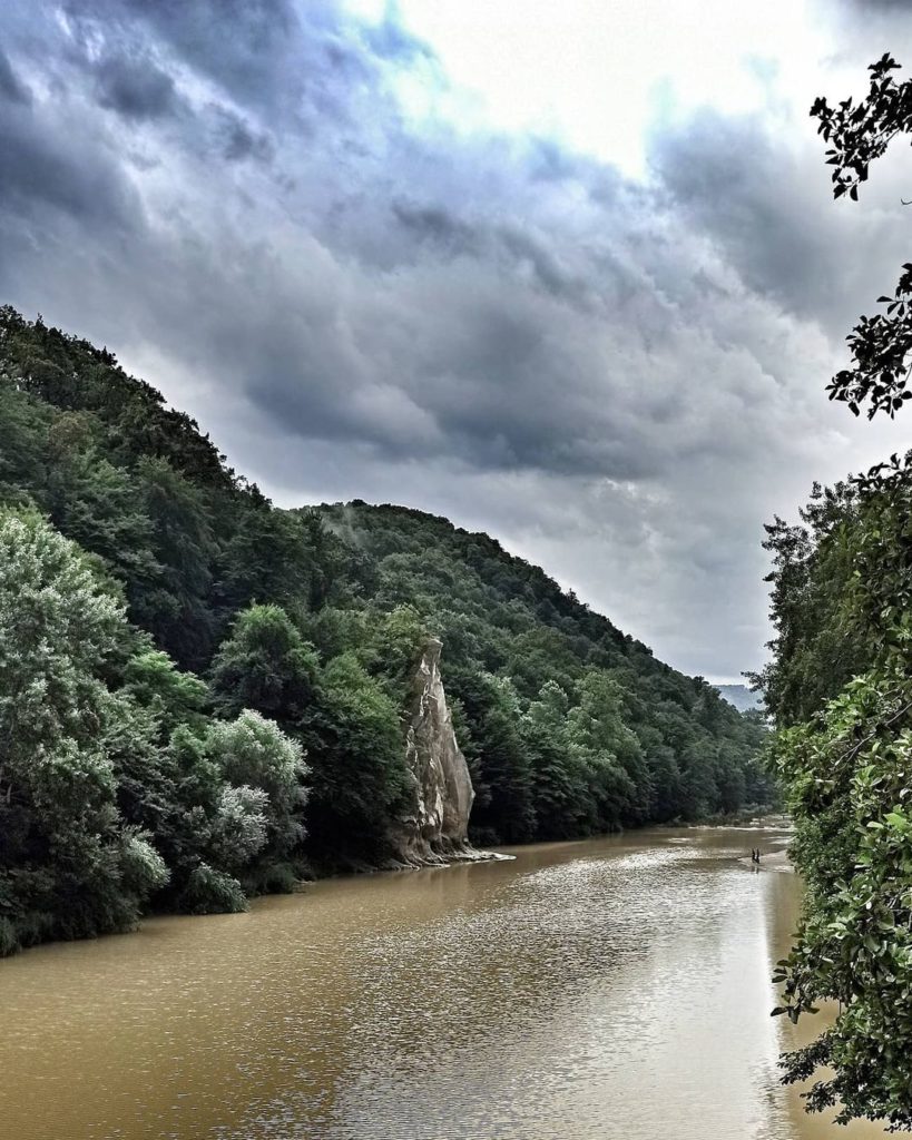 С левого берега реки Псекупс открываются отличные виды на Скалу Петушок (она же Скала Спасения).