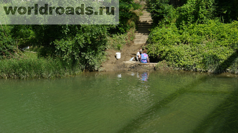 Перед мостом внизу – термальный Сероводородный источник. В светлое время суток здесь часто сидят люди, опустив ноги в ванну. Вода тёплая круглый год.