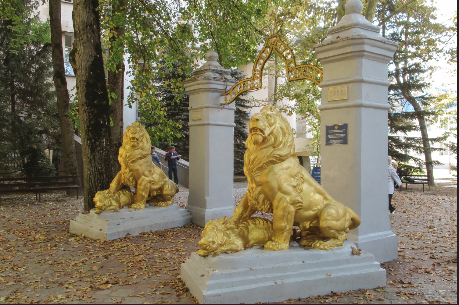 Не только природа украсила это место, великолепные белые колонны с золотистыми львами, установленные в одном из парков в честь 50-ти летия курорта, созданы еще в 20ом веке, а именно в 1914 году. Арка возведена перед входом в Целебный парк, а неподалеку расположена питьевая галерея.