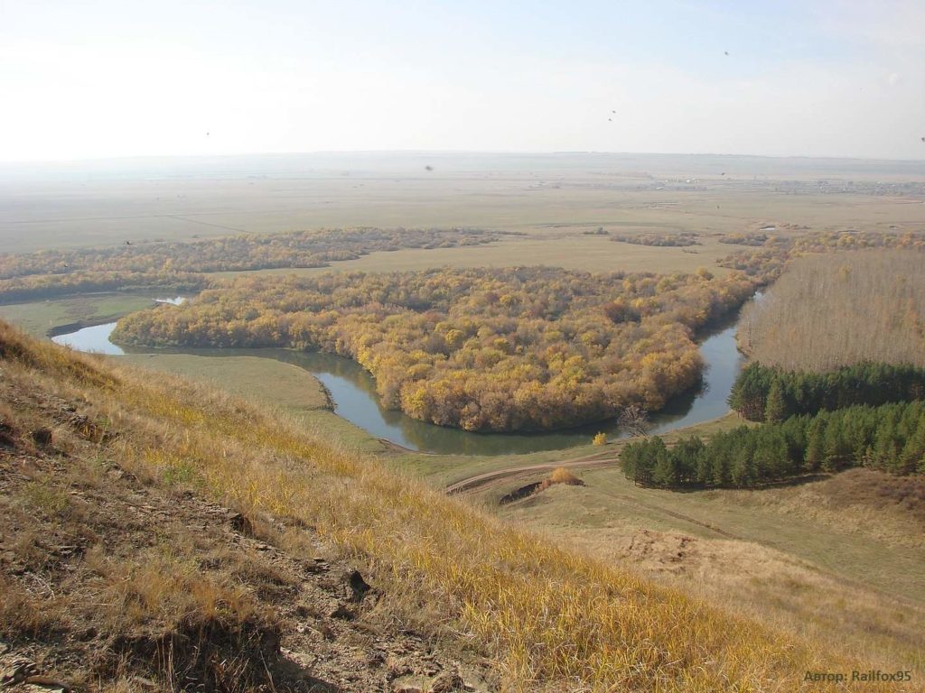 На территории Оренбургской области русло описывает огромную дугу, направленную с востока на юго-запад. Далее река поворачивает на запад, разделяя собой Оренбургскую область и Башкортостан.