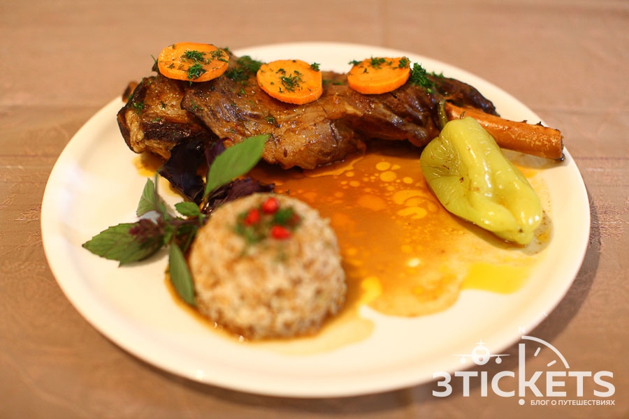 Хит меню и гордость шеф-повара — баранья ножка, приготовленная с корицей, красным вином и чили. К великой досаде вегетарианцев, на армянском языке название блюда звучит как «ножка бедного ягненка».