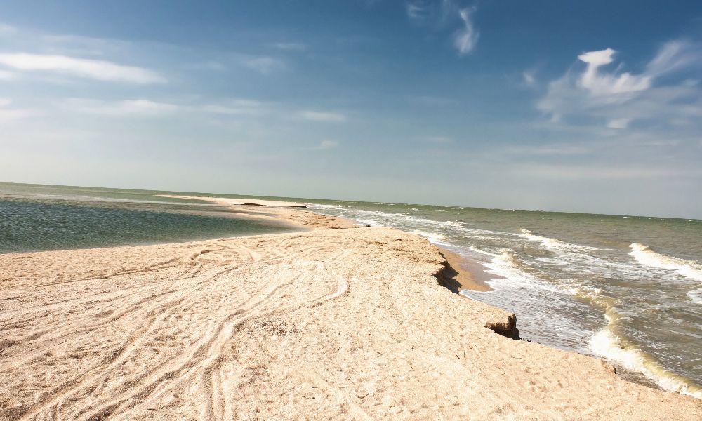 Одна из характерных черт водоема – большая изрезанность береговой линии. Песчаные отмели, небольшие островки, косы и плавни – все это можно встретить, прогуливаясь по Азовскому морю. Фото этих мест завораживают. Самые крупные косы находятся на севере – Бердянская, Кривая, Белосарайская и Обиточная. Среди островов, наибольшими размерами выделяются Бирючий, Песчаный и Черепаха. Последний был создан искусственно по распоряжению Петра Первого.